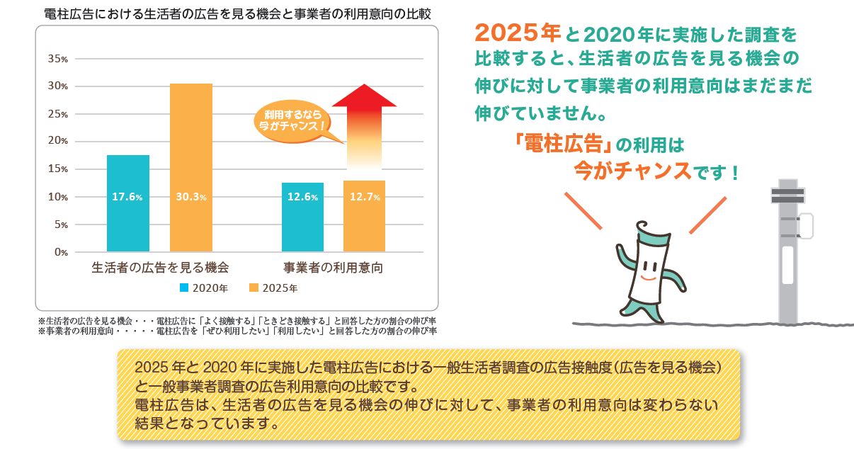 事業者の利用意向と比較して、生活者の電柱広告を見る機会が増えています。